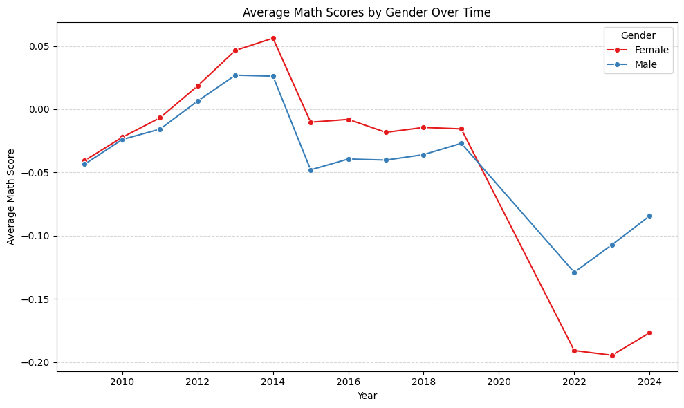 Figure 2. Average math scores by gender over time.