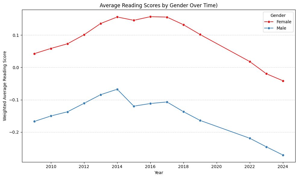 Figure 3. Average reading scores by gender over time.